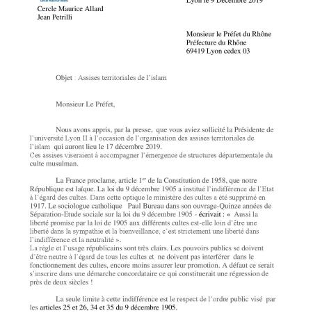 Assises Territoriales du Culte Musulman: le Préfet du Rhône se prend les pieds dans la loi de 1905!